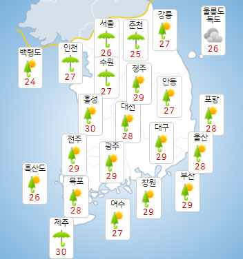 일기예보 내일날씨 전국 곳곳 비 일요일 다시 무더위 이투데이